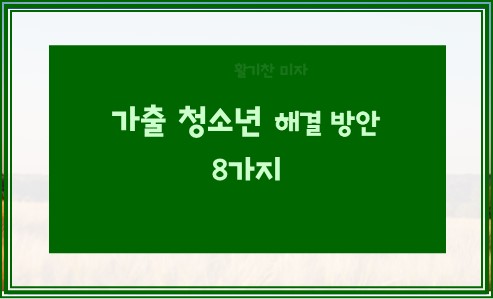 가출 청소년 해결 방안