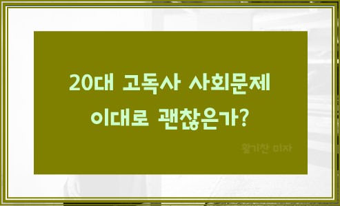 현대사회에서 고독사는 점점 더 심각한 문제로 대두하고 있다. 고독사란 혼자 생활하는 사람이 외부 세계와 단절된 채 사망하는 경우를 말한다. 특히 20대의 고독사 문제는 더욱 주목할 만하다. 20대는 사회에 첫발을 내딛는 시기로, 이 시기 겪는 고독과 외로움은 개인의 삶뿐만 아니라 사회 전체에도 큰 영향을 미칠 수 있다.