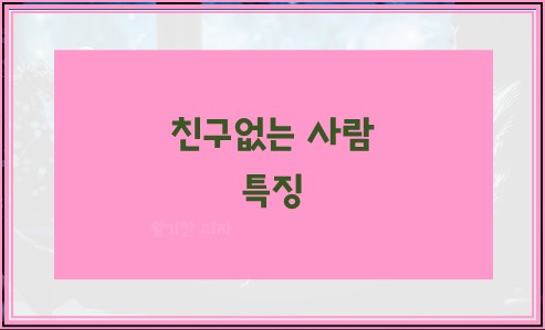 친구없는 사람 특징
