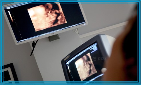 - 초음파를 통해 태아 심박 수를 확인하고 자궁 내 태아 상태를 평가한다.